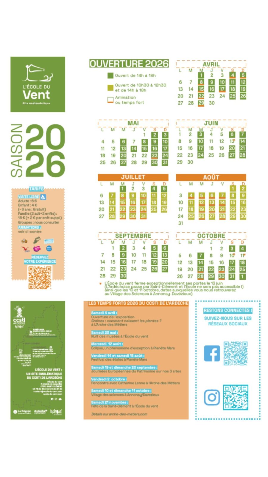 From 23/03 to 01/11/2026 on Tuesday, Wednesday, Thursday, Friday and weekends.