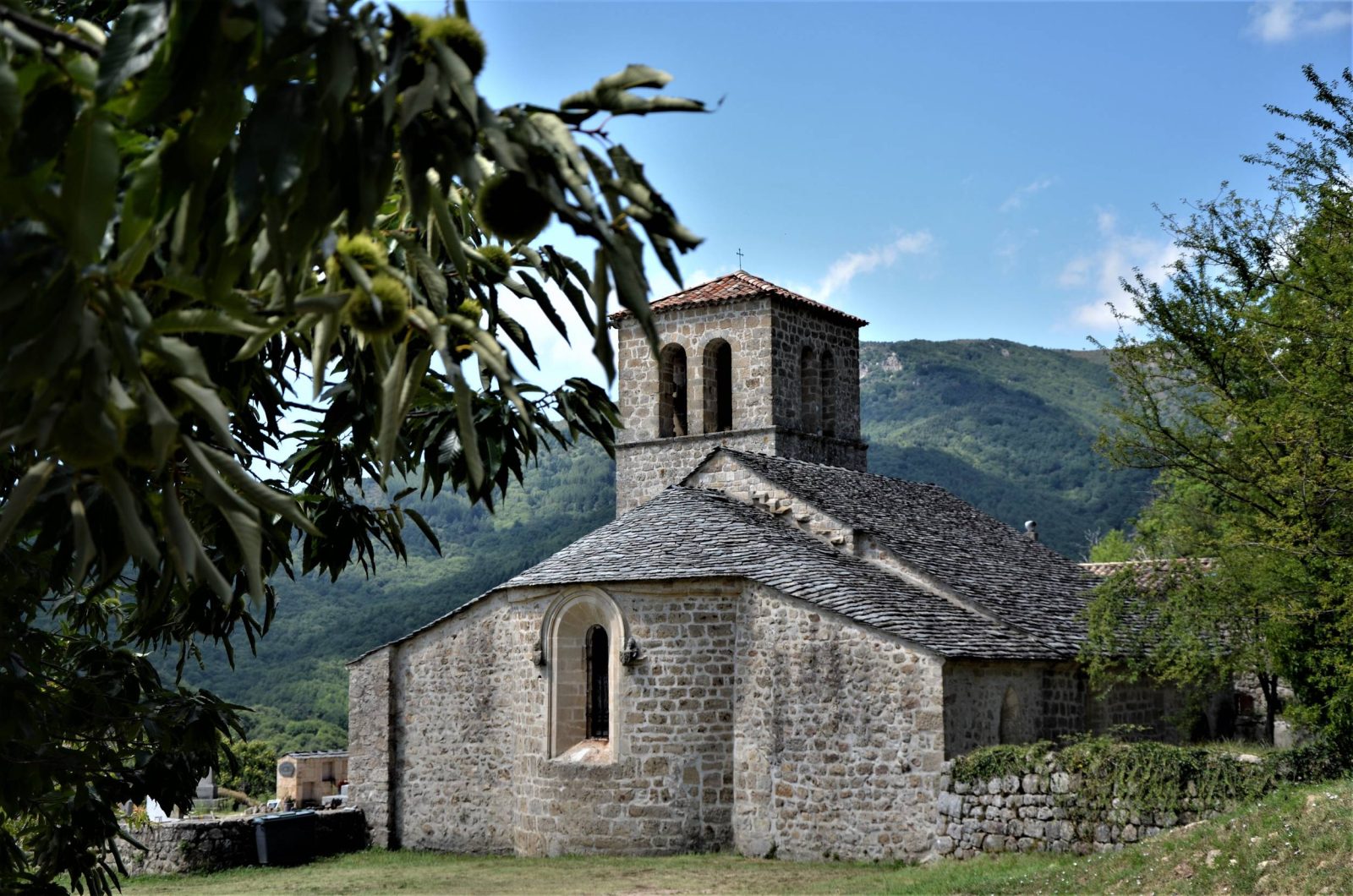 After crossing the village through the alleys, continue on the path descending through chestnut groves to the pretty Cannelle bridge. Cross it and climb back up to the road. Turn left, pass under the Mouleyres hamlet, and reach the Rochebrune hamlet by the road.