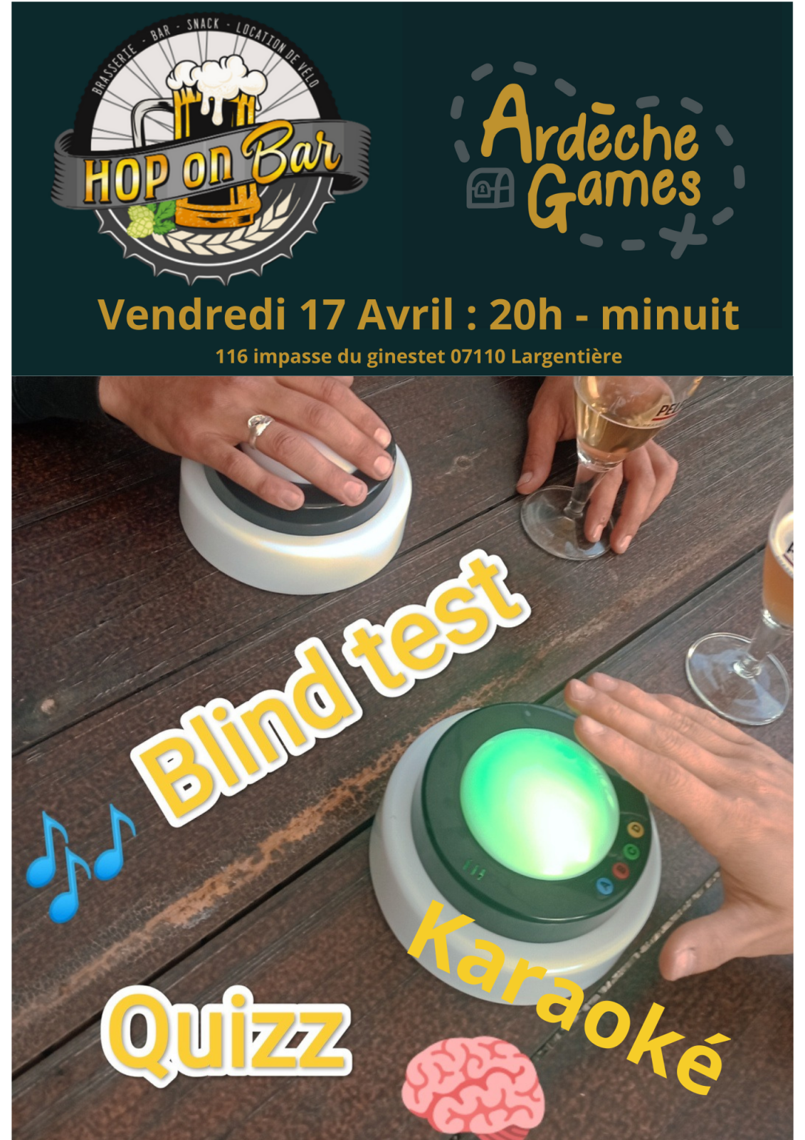 Opening About Prices atelier cuisine a Hop on Bar Back to the list DJ Année 90/2000 au Hop on Bar Dates Friday 17 April 2026 between 8 pm and 1 am. Labels and rankings karaoke Sort Entertainment/recreation Themes Singing/Song Prices Free access Free of charge.