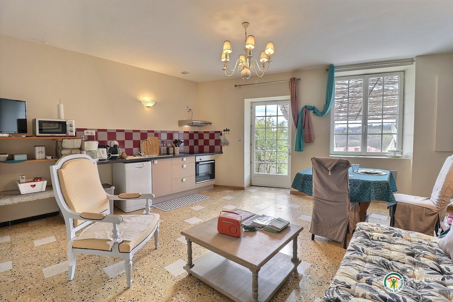 At the heart of the medieval village of Montréal, our second gite is at the 1st level of our house, it has its own entry and its private terrace (west exposition).